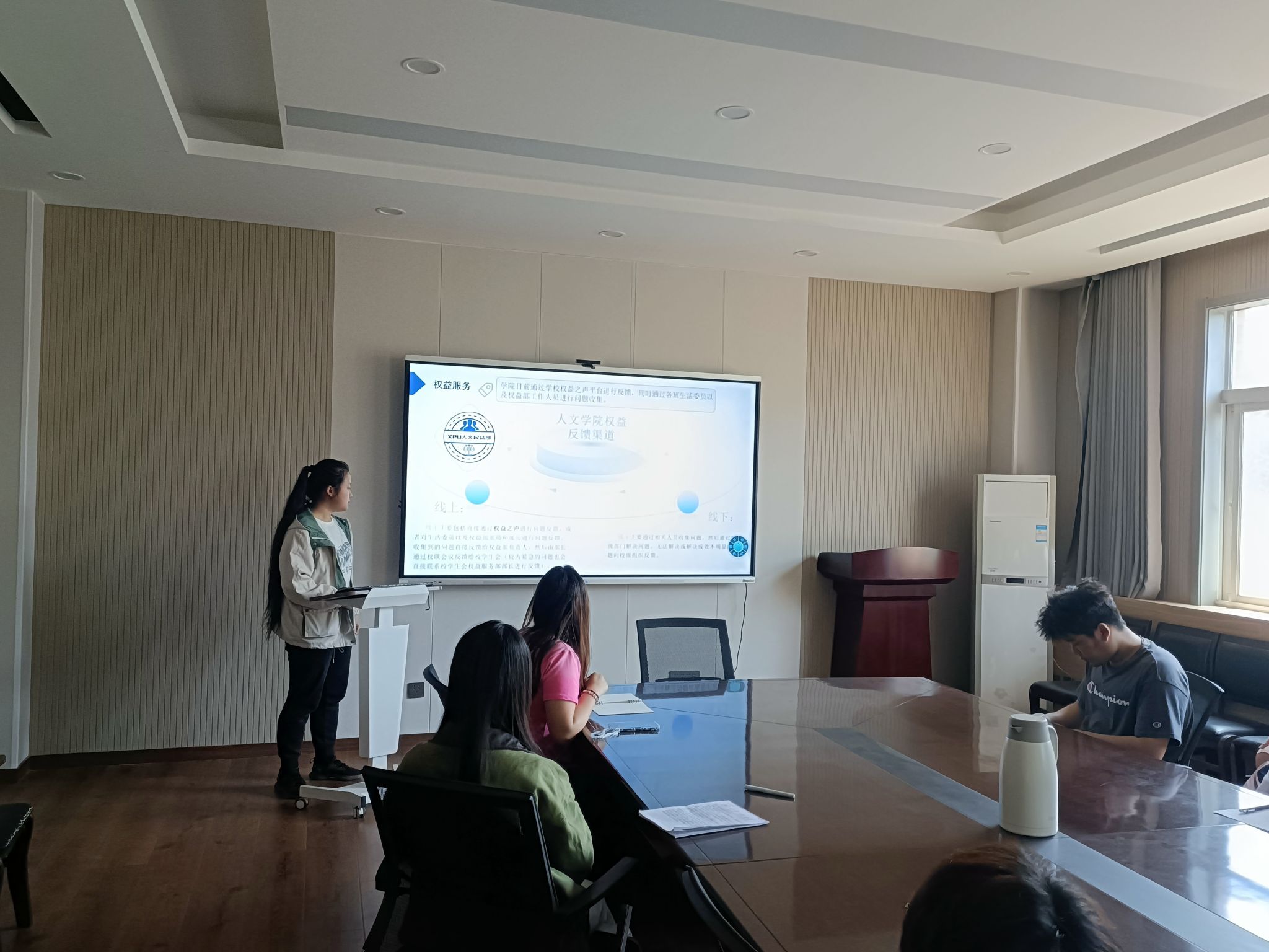 主席团成员陈梦姚组织参会人员对“全国学联第二十七届主席团第五次会议精神”进行学习,介绍了2024年度陕西省学联员工会组织重点工作安排。她强调院员工会将在组织建设中持续推进理论学习常态化,以思想引领助力青年在青春赛道上跑出最好成绩,聚焦政治引领,服务广大同学,进一步提高员工会在思想引领上的真实贡献度。