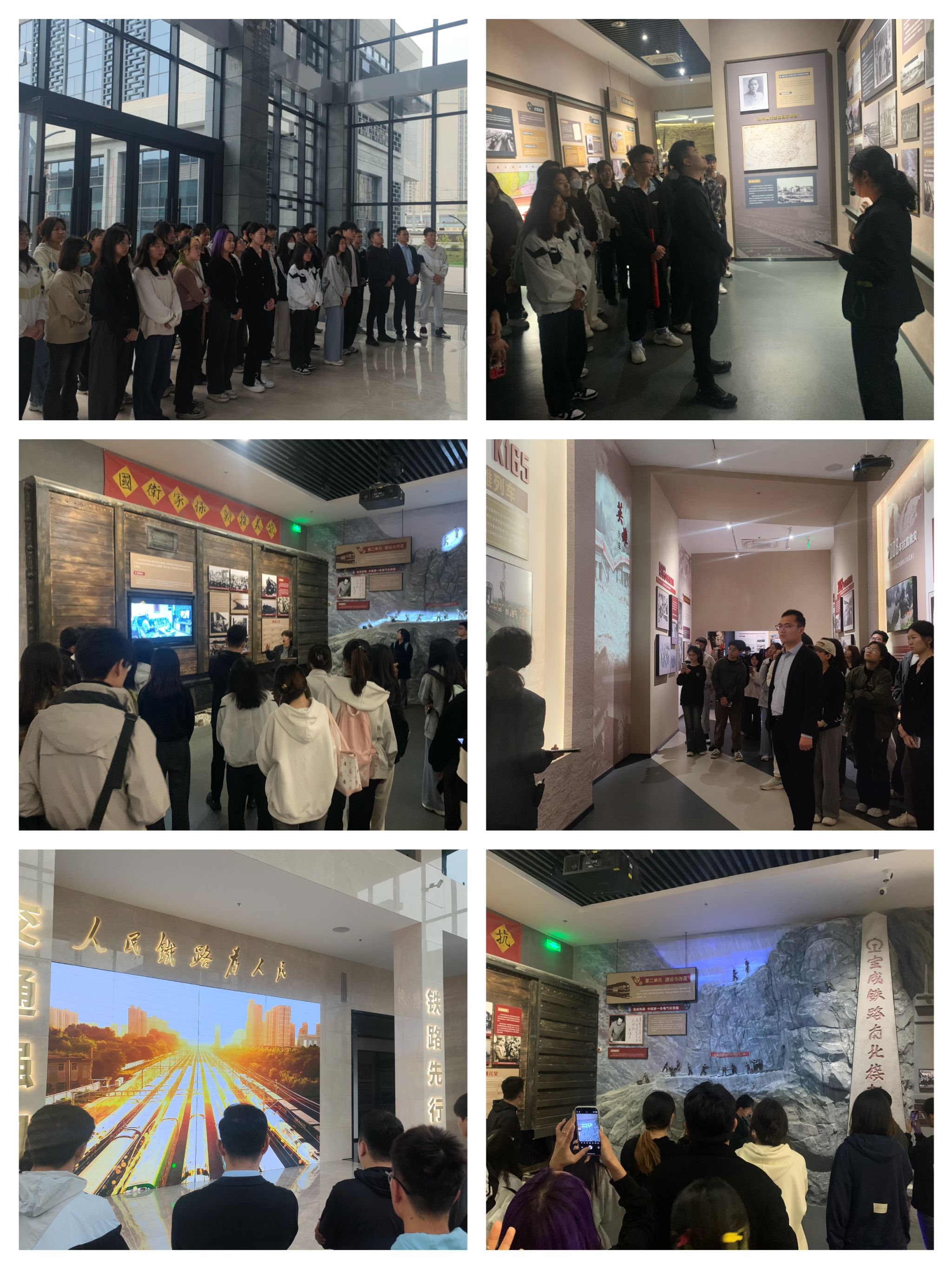 陕西铁路陈列馆位于西安市临潼区,是陕西首个以“铁路发展史”为主题的展馆,也是唯一一家全面反映陕西铁路诞生、建设、发展和壮大的专题性展馆。在陈列馆讲解员的引导下,师生们依次从“沧桑·艰难起步”“新生·稳步前行”“变革”和“腾飞”四个部分,了解了1905年至今四个时期陕西铁路的发展历程。铁路人在隧道抢险、抗震救灾、河床整顿的身影历历在目,让师生们切身感受到了他们砥砺前行的奋斗足迹。