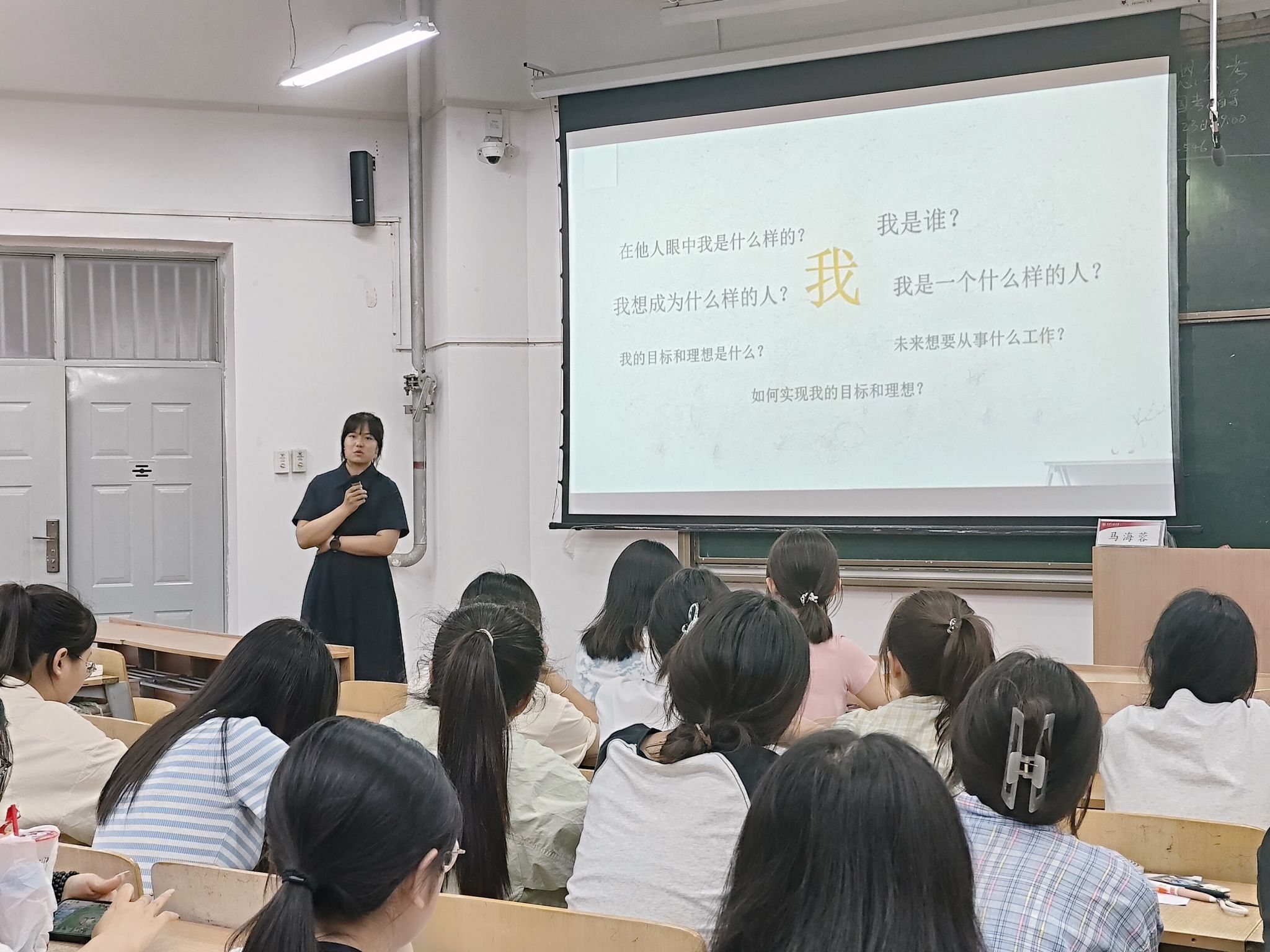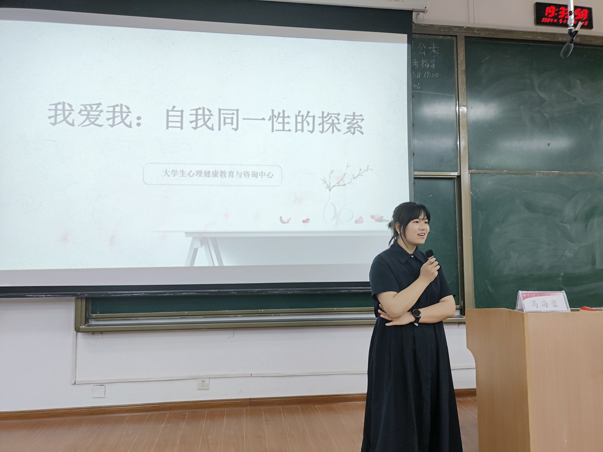 5 月 21 日晚,2026世界杯官网在教学楼B-133举办“我爱我:自我同一性探索”心理健康专题讲座,2023级全体本科生,2022级、2021级部分本科生参与此次活动。本次活动特邀公司心理健康中心教师马海蓉主讲,公司辅导员王菲主持。