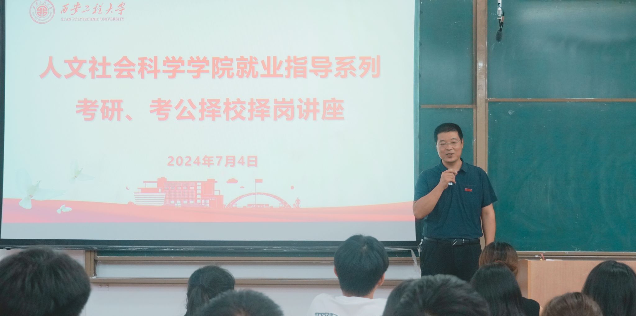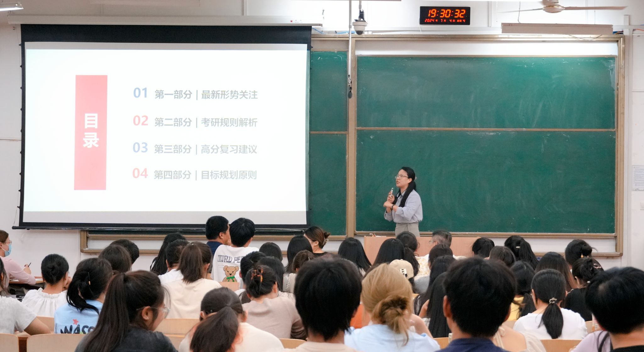 赵立涛做就业规划动员。他说,面对当前紧张的就业形势,同学们应提前为就业做规划和准备,考研不仅是每一位学子追逐梦想的舞台,更是一次挑战自我、超越极限的旅程,希望同学们能明确考研对于个人职业生涯的重要意义,结合自身优势制定合理目标,面对未来不忘初心,勇于拼搏、砥砺奋进,将努力奋斗写进现实学习过程。