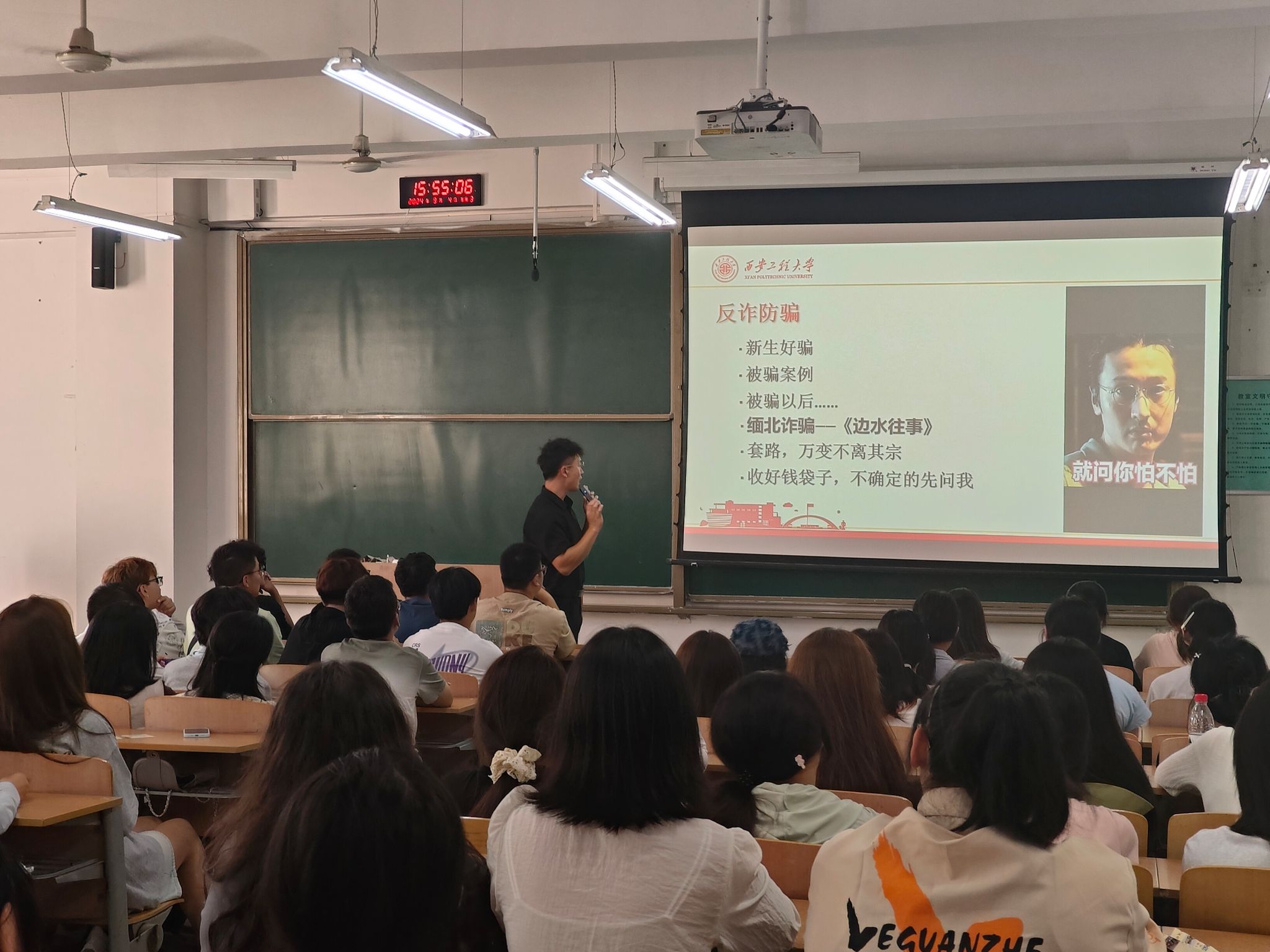 随后,刘杨扬从请假制度、反诈防骗和安全教育三个方面为新生提供了全面的指导,帮助新生更好的适应老员工活。首先他讲解了请假的流程和规范,提醒新生们要严格遵守公司规定,强调这不仅是对自身安全的负责,也是维护公司正常教学秩序的必要措施;其次是反诈防骗,他通过列举各种常见的诈骗手段,让新生们了解诈骗分子的作案方式和特点,同时,还传授了一些防范诈骗的方法和技巧,提高了同学的防范意识;最后的环节聚焦在安全教育,他从消防安全、交通安全、宿舍安全等多个方面入手,为新生们广泛普及安全知识以及应急处理方法。