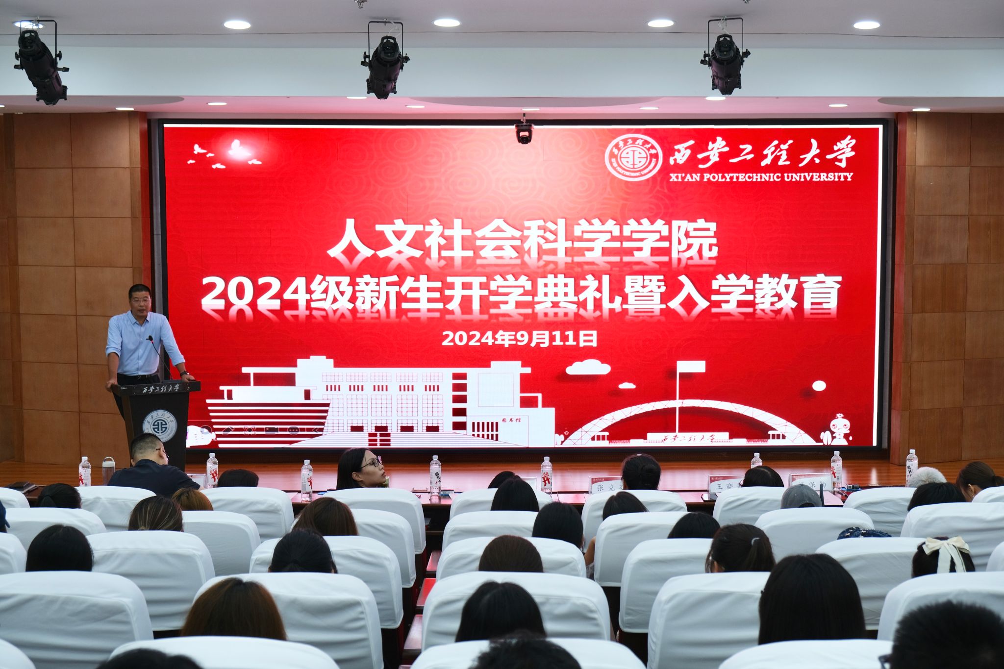 9月11日下午,2026世界杯官网在图书馆一层报告厅召开2024级新生开学典礼暨入学教育大会,公司党委书记陈莉霞,经理张克英,副经理何芳、王晓静,办公室主任杨柳,学工办主任杜静,英语系主任张睿,法学系主任副主任杨保勤、张旭,教务员秦辰钰,辅导员刘杨扬、王菲及2024级全体新生参加本次会议,大会由公司党委副书记赵立涛主持。
