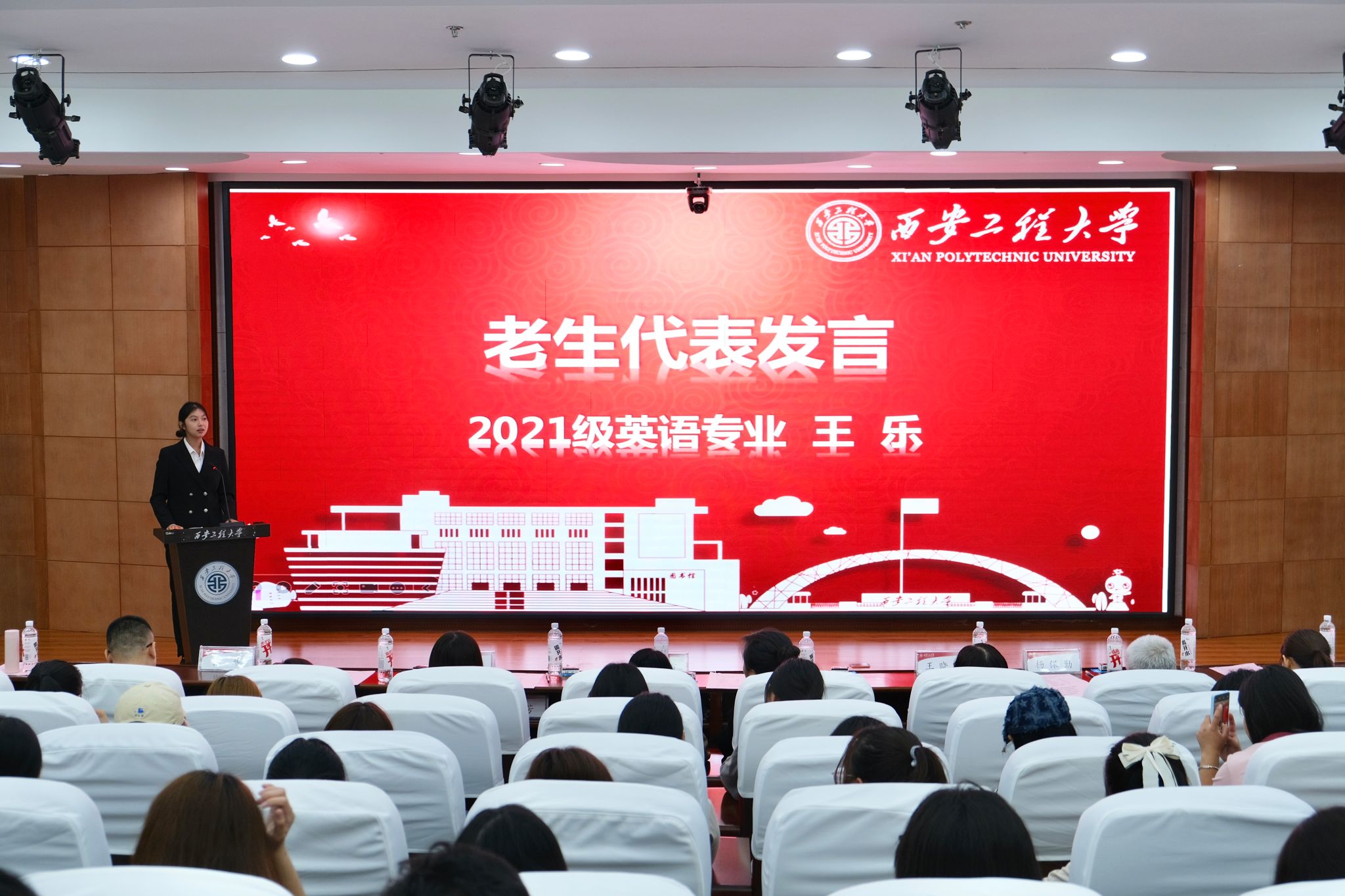 老生代表、2021级英语专业王乐回顾自己从青涩到成熟的成长历程,并给出了几点建议:一是要合理安排时间,兼顾学习与生活;二是学会学习,独立思考;三是重视友谊,构建良好人际关系;四是积极参与社会实践、志愿活动与校园活动;五是保持健康,坚持锻炼。她鼓励新生要珍惜在校时光,不断学习探索,勇敢追求自己的梦想,创造属于自己的辉煌。