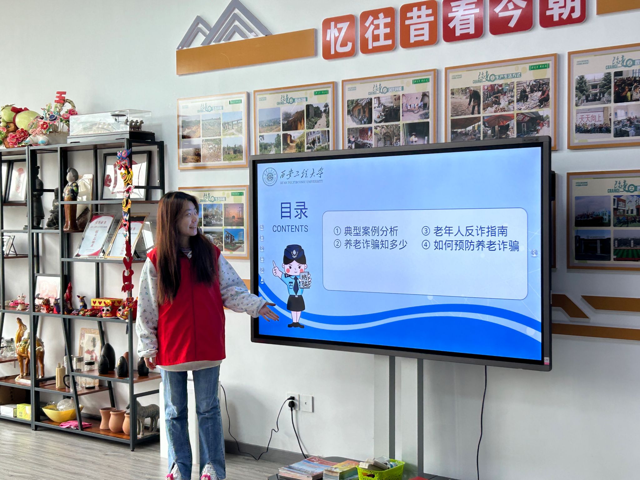 随后,法学专业黄妍同学向老人们列举了一系列实用的防诈技巧。她强调老人要谨慎对待那些高收益的诱惑,牢记“天下没有免费的午餐”;提醒老人不要随意向陌生人透露个人信息,保护好自己的隐私;同时,对那些突如其来的陌生推销要保持高度警惕,不要轻易相信花言巧语。