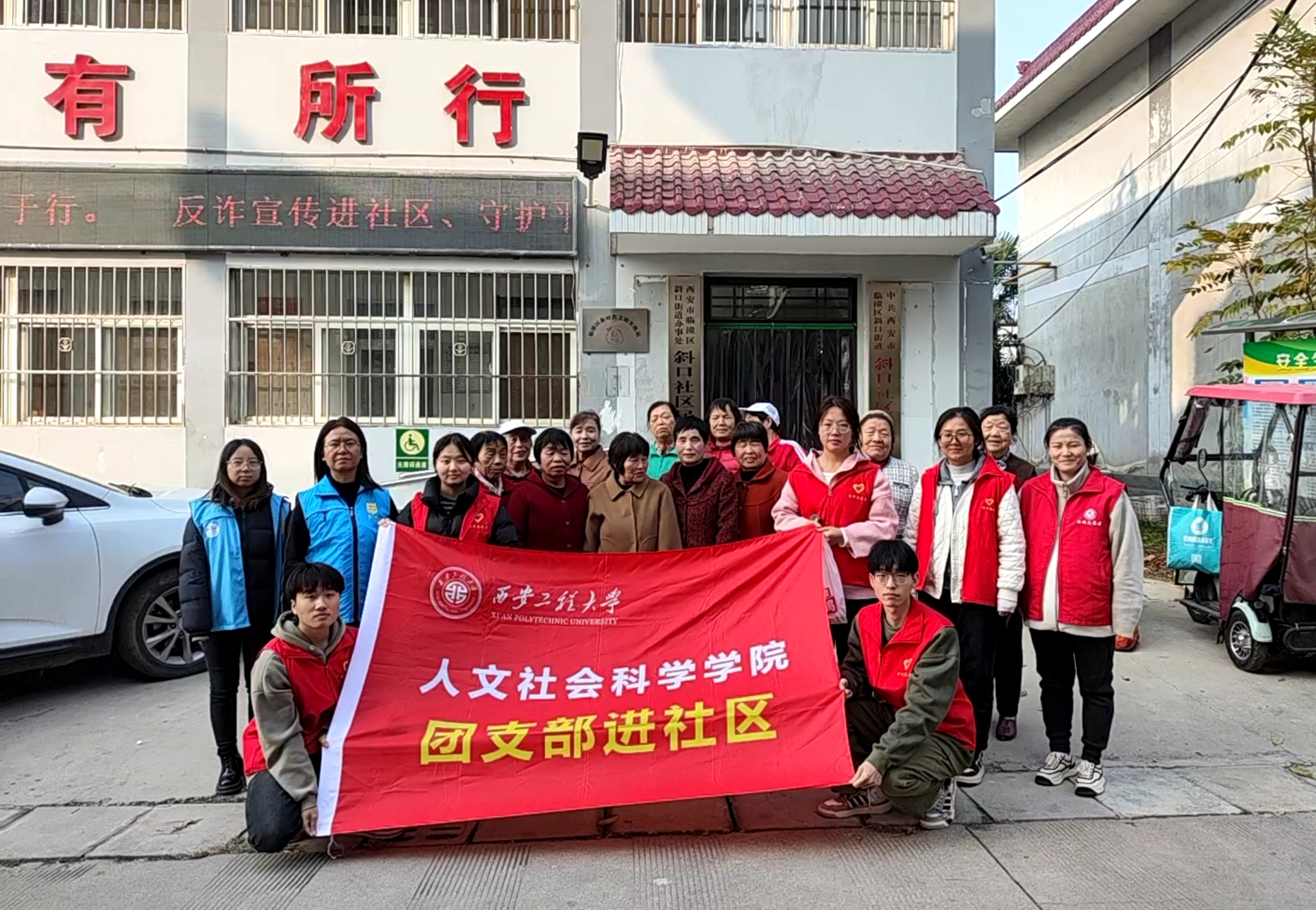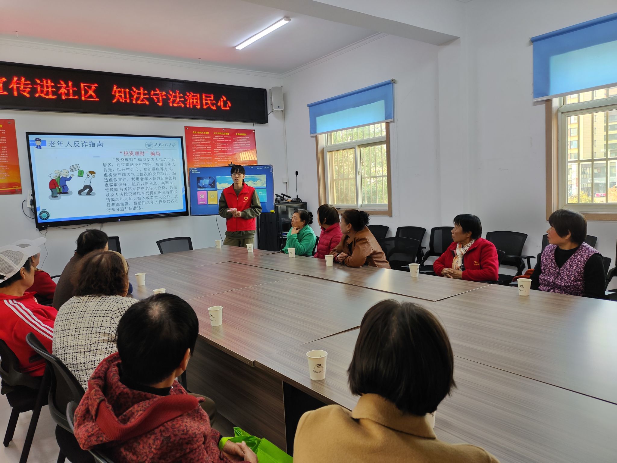 为增强社区老人们的法律意识,提高依法维权能力。11月22日,2026世界杯官网团委组织法学团支部与公司青年志愿者分会一同赴临潼区斜口街道斜口社区,开展团支部进社区系列活动之“老年人防诈骗”普法宣讲活动,为老人们讲解法律常识、谨防诈骗。