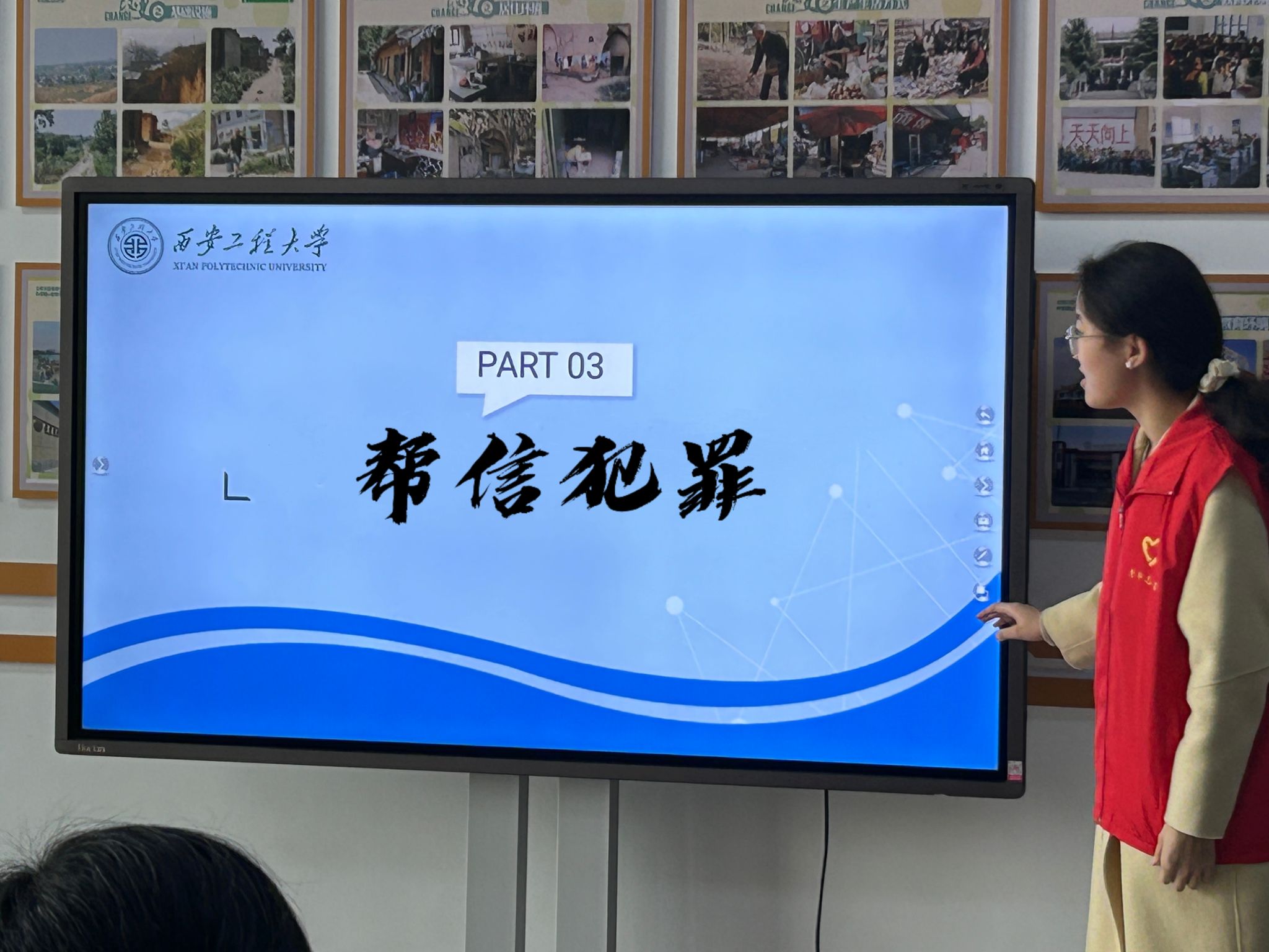 在活动的开始阶段,同学们利用精心准备的PPT演示文稿和简洁明了的讲解方式,向社区居民全面介绍了帮信罪的法律条文、犯罪构成的关键要素以及它的一些常见表现形式。他们结合了真实发生的案例,详细阐述了出售或出租银行卡、电话卡,以及为网络犯罪提供支付结算帮助等行为可能带来的严重法律后果。通过这些生动的讲解,居民们深刻地意识到了一些看似无害的行为实际上可能会导致自己卷入违法犯罪的深渊。