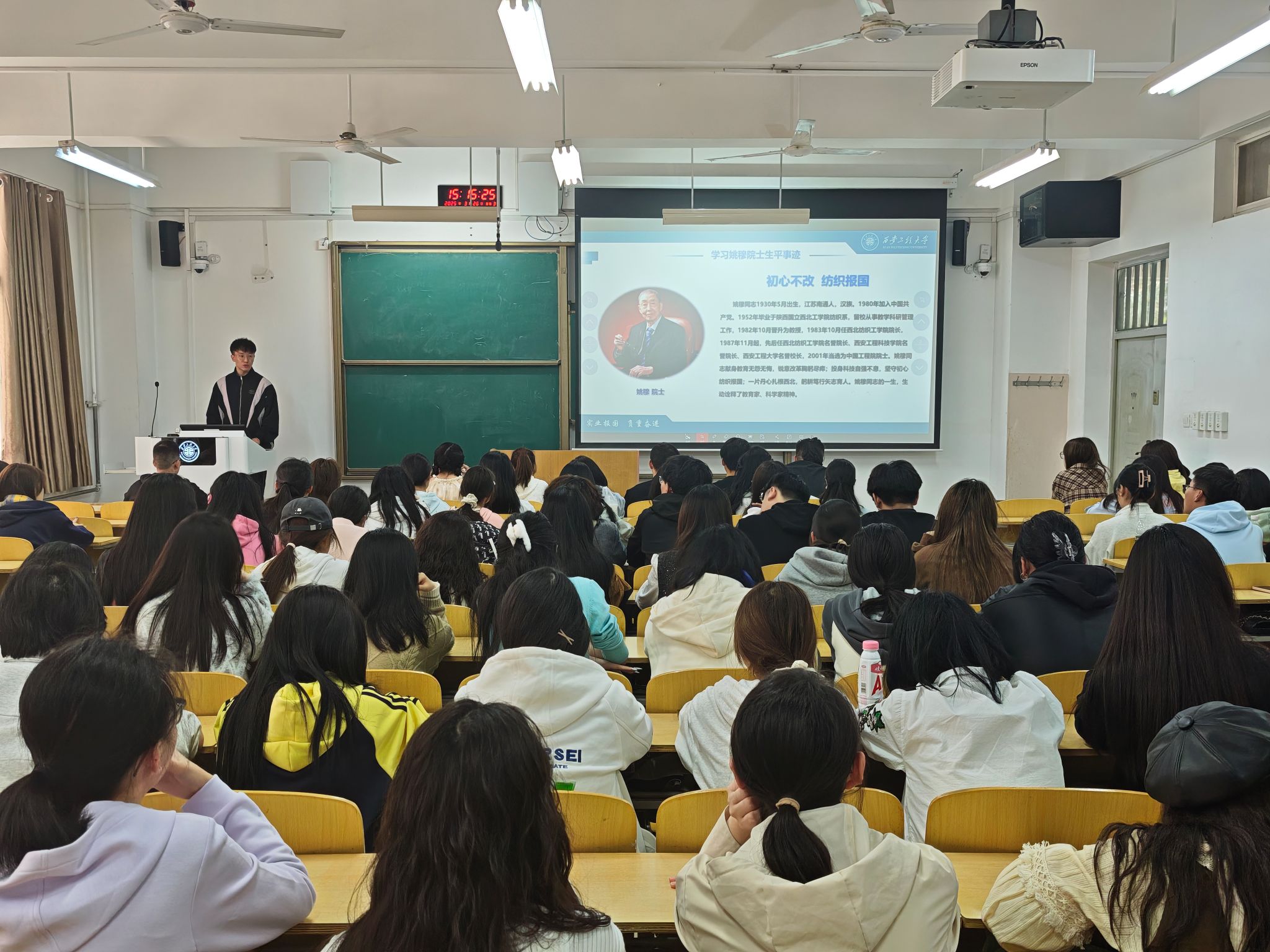 会上,大家通过《初心不改纺织报国》专题纪录片共同了姚穆院士科研报国、倾心育人的一生。作为科研与教育领域的典范,姚穆院士的坚守与奉献引发员工共鸣。刘杨扬以院士“初心如磐”的奋斗历程为切入点,激励员工从中汲取精神养分,将严谨治学、担当奉献的品格融入个人发展之中。