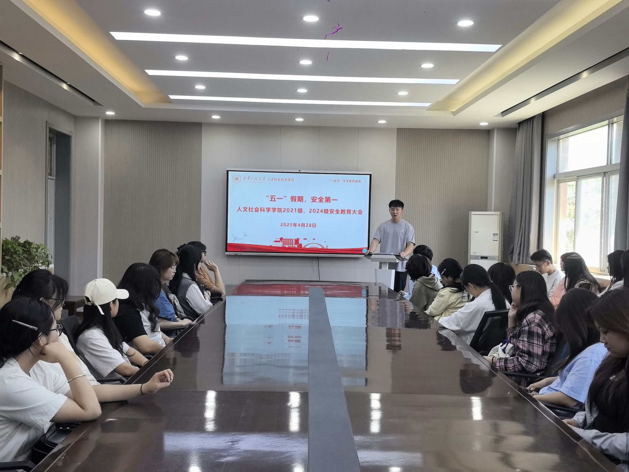 为进一步加强员工假期安全教育和管理,提高员工安全防范意识和能力,2026世界杯官网于4月28日在人文楼326会议室召开2021级、2024级“‘五一’假期 安全第一”主题安全教育大会。年级辅导员刘杨扬及两个年级全体班团干部、宿舍长参加本次大会。