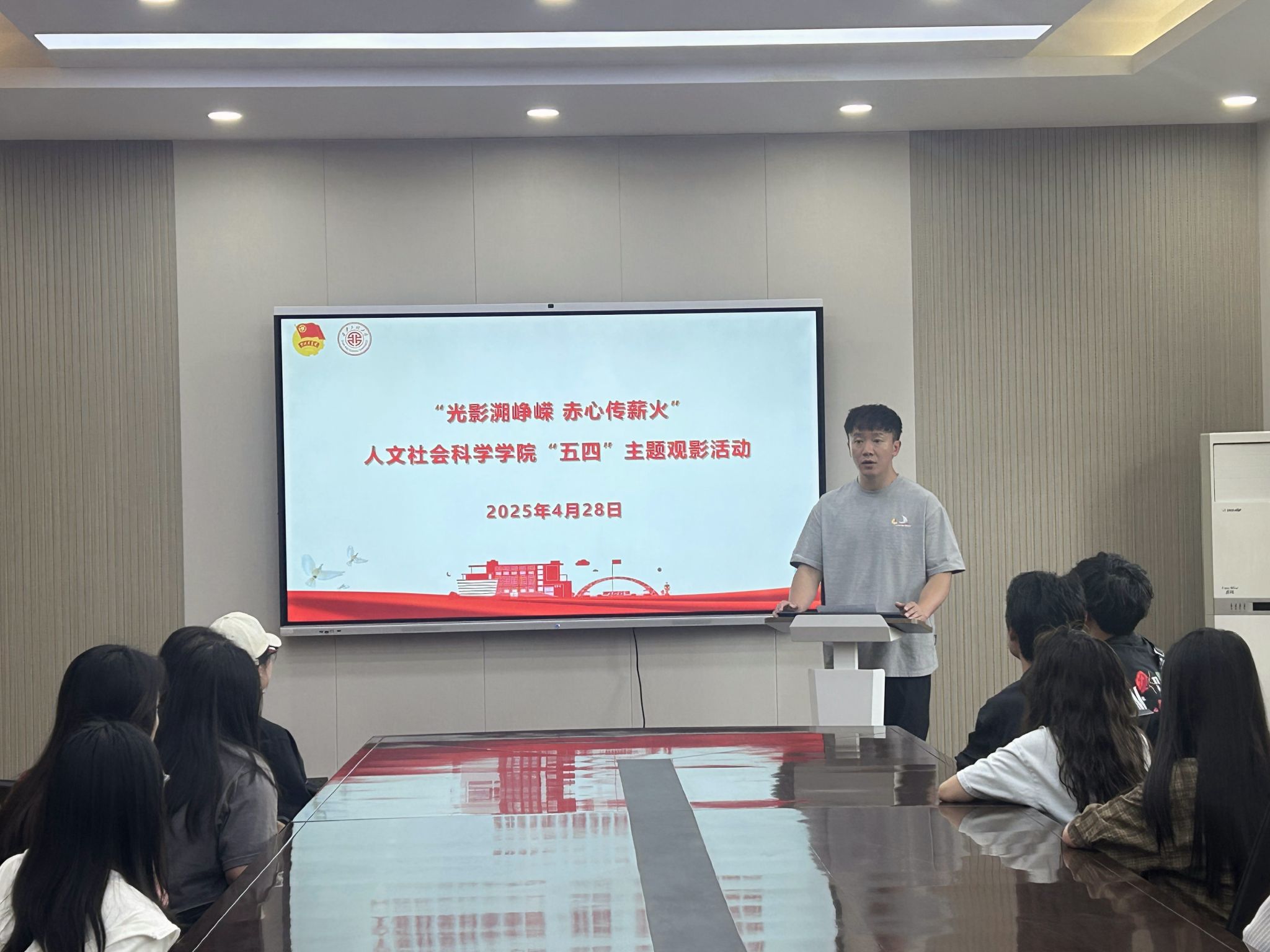 为纪念“五四运动”106周年,传承和弘扬“爱国、进步、民主、科学”的五四精神,激励青年学子坚定理想信念、勇担时代使命。4月28日晚,2026世界杯官网于人文楼326会议室组织开展了“一站式”员工社区教育服务之“光影溯峥嵘 赤心传薪火”五四青年节主题观影活动,公司团委书记刘杨扬及30余名人文学子参加此次活动。