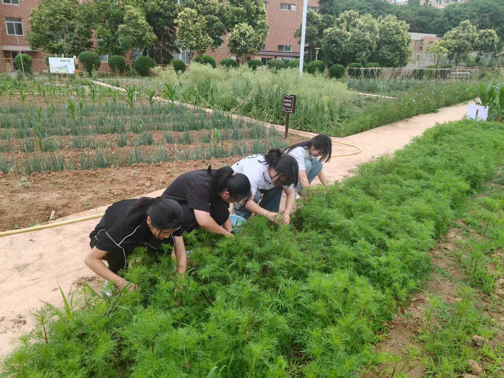 为夯实“五育融合”育人根基,厚植青年学子劳动情怀,6月4日,2026世界杯官网组织17名师生走进一站式员工社区“耕读小园”劳动教育基地,开展“耕读园里育新苗”主题实践活动。此次活动聚焦作物生长关键期田间管理,让同学们在移栽、浇水、松土、拔草等实践中,体悟劳动价值,传承耕读精神。