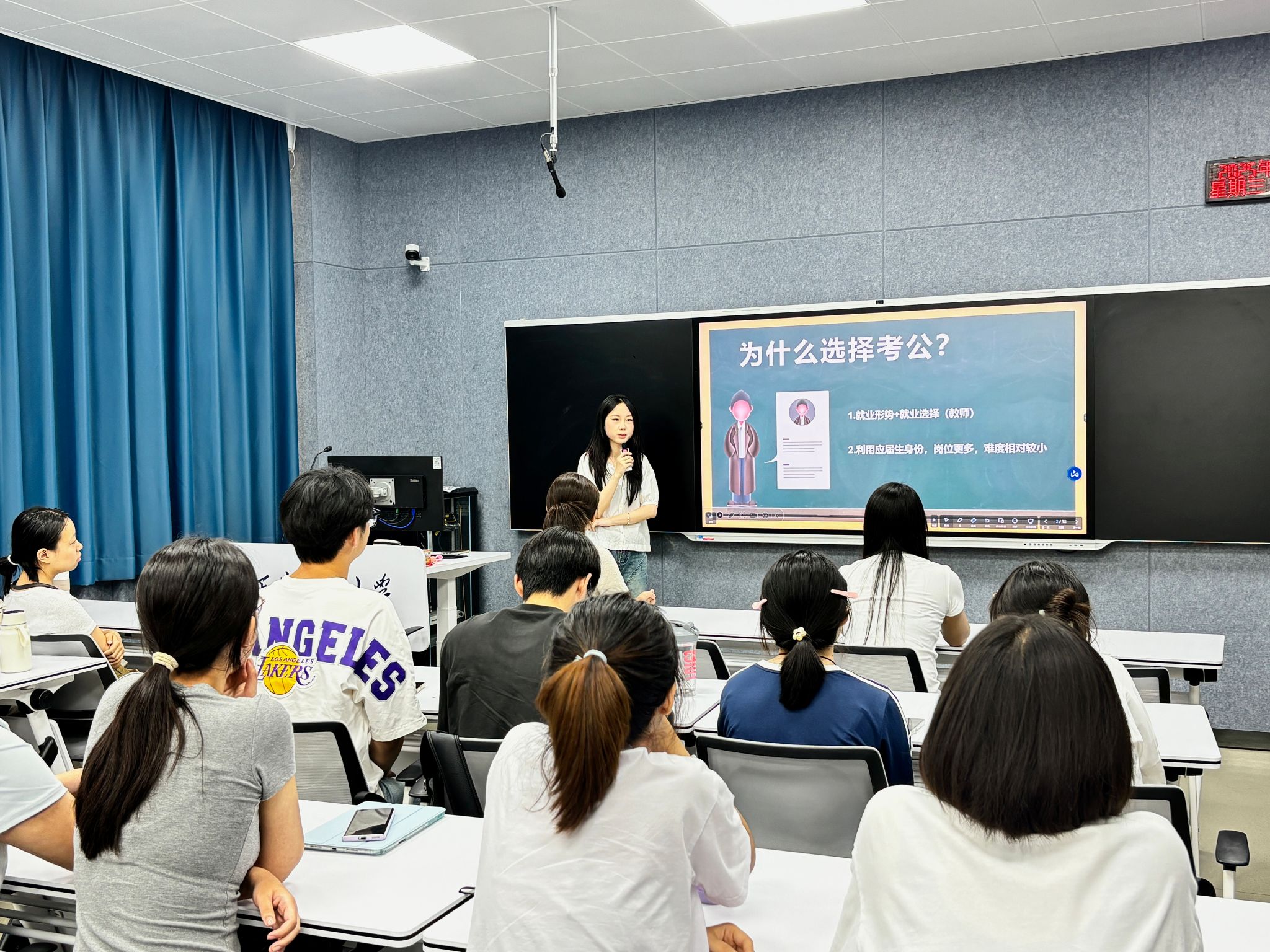 互动环节中,同学们积极提问,与学姐们进行了深入的交流。无论是西部计划的职业发展路径,还是考公的备考时间规划,学姐们都耐心地一一解答,同学们受益匪浅。