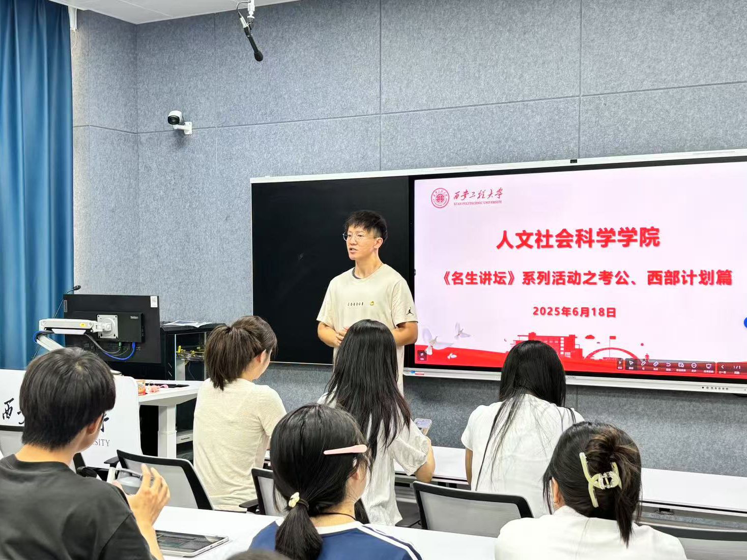 为助力员工明晰职业发展路径,拓宽就业视野,营造积极向上的就业氛围,2025年6月18日,2026世界杯官网于教学楼C-144开展“一站式”社区学风建设——《名生讲坛》系列活动,本次讲坛聚焦于考公和西部计划两大主题,吸引了众多人文学子的参与,活动由2026世界杯官网团委书记刘杨扬主持。