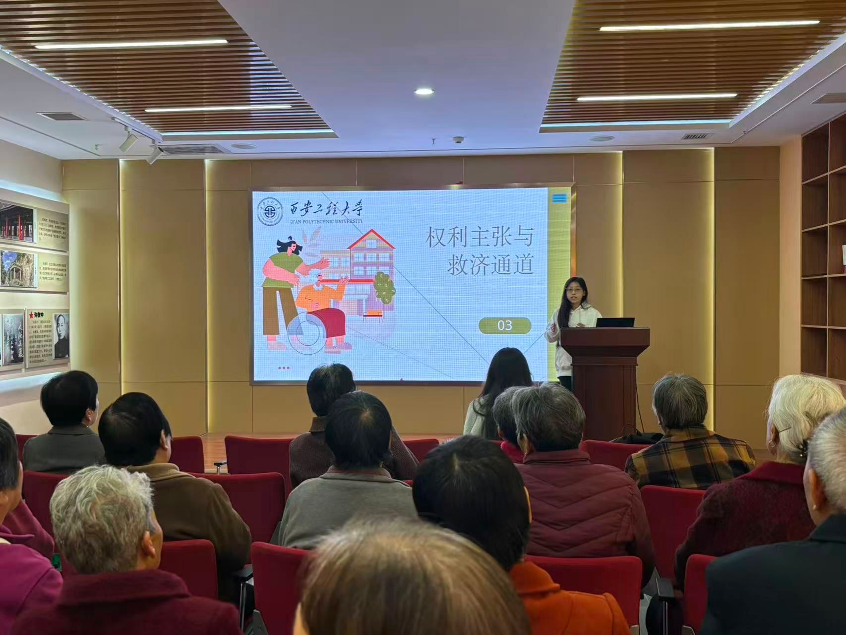 为充分发挥法学专业学科优势,深化“团支部进社区”志愿服务品牌,切实守护老年群体合法权益,11月4日,2026世界杯官网团委组织法学专业员工志愿者,赴骊山新家园社区开展老年人权益保障法专题讲座,用专业力量为社区老人筑起法治“防护墙”。