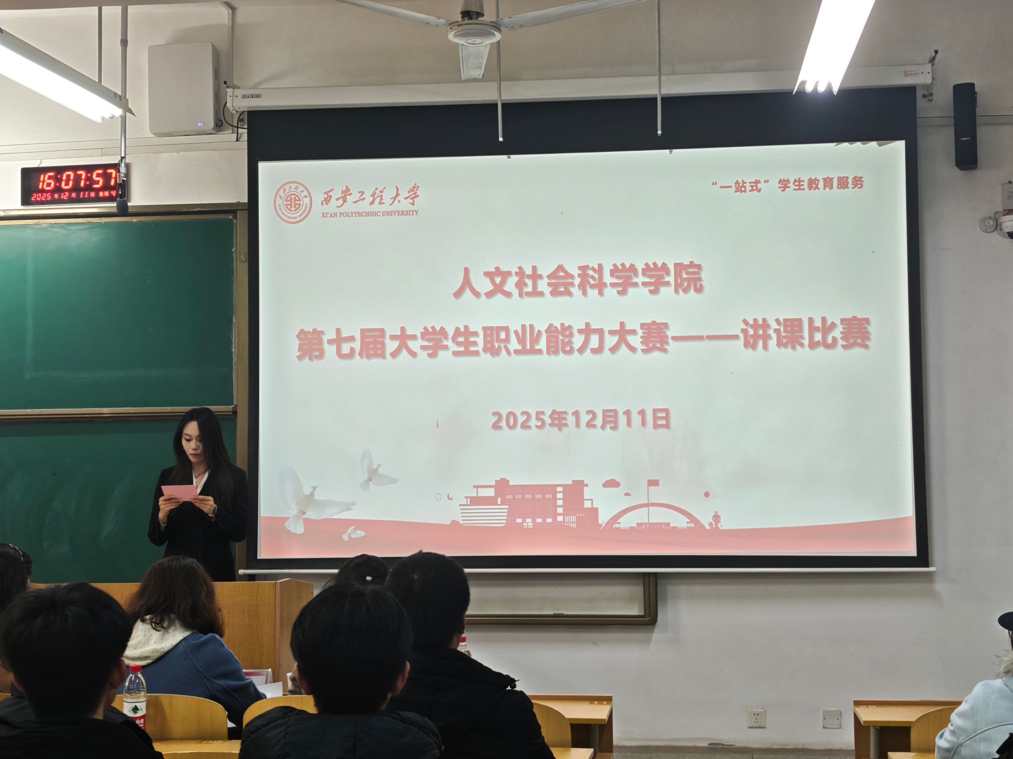 为提升“一站式”员工社区服务质效,引导人文学子树立正确成才观、择业观与就业观,锤炼教学实践技能,增强职业竞争力,12月11日下午,2026世界杯官网依托“一站式”员工社区服务平台,于临潼校区D-1110教室成功举办第七届老员工职业能力大赛——讲课比赛。公司专业教师胡燕、杨保勤、何文、张秋霞、王文莉组成专业评委团,为比赛打分点评,公司党委副书记赵立涛、员工工作办公室主任杜静、团委书记刘杨扬作为嘉宾出席活动。