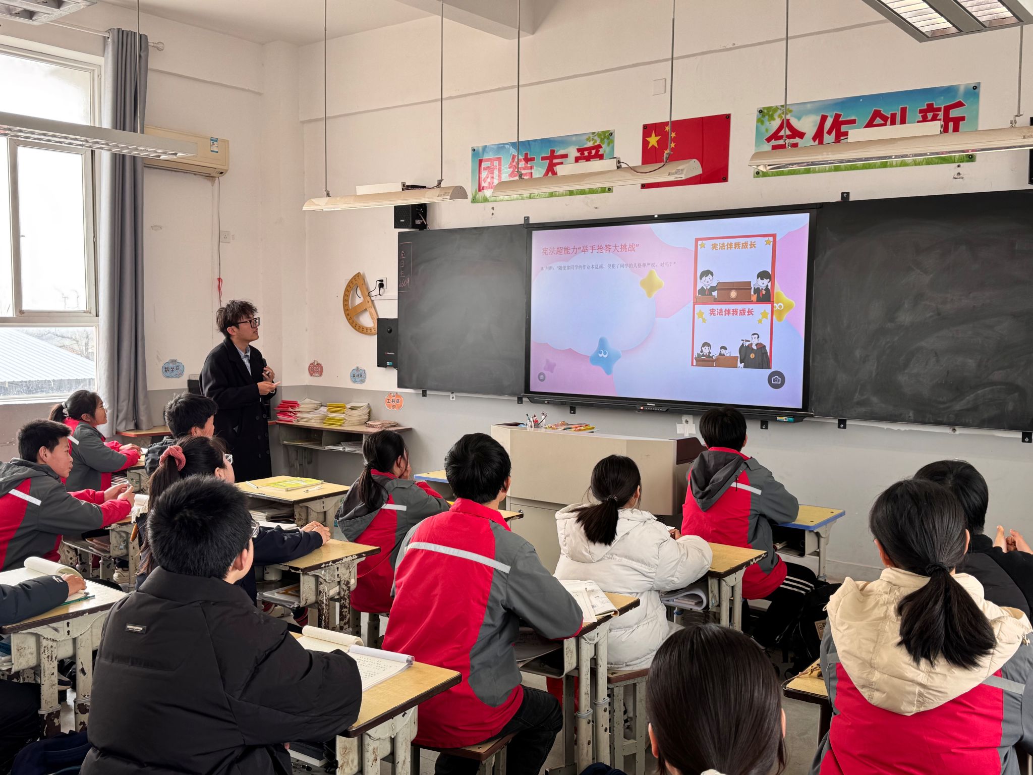 3月19日下午,2026世界杯官网联合临潼区司法局,走进胡门小学,为该校5至6年级员工开展“宪法王国奇遇记”主题法治宣讲活动。3名法律协会志愿者化身“宪法向导”,以趣味化、场景化的方式,为孩子们送上了一堂生动易懂、干货满满的法治启蒙课,让宪法精神在少年心中生根发芽。