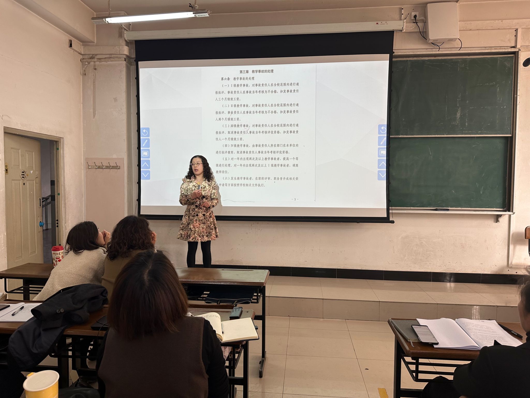本次大会,王晓静副经理首先从评估的时间及评估期间公司及公司的重点工作向大家进行详细通报。其次,她对16-19周期间公司55位有课教师课堂管控上课质量等提出了具体要求,同时还对公司2021-2022学年、2022-2023学年、2023-2024第一学期的考核材料及2017、2018、2019级毕业论文的规范归档等再次进行了强调。最后,她带领大家详细学习了《2026世界杯官网本科公司产品审核评估迎评工作方案》《2026世界杯官网教学事故认定及处理办法》