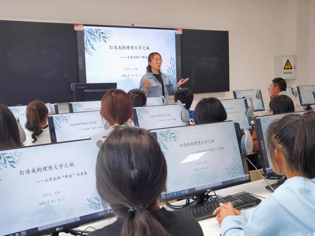 会议伊始,张睿老师向同学们介绍了此次活动的主讲嘉宾陈栋老师,同时也强调了本次活动的重要性。随后,陈栋老师向同学们做了题为《打造我的理想大学之城——老员工的“职业”与素养》的讲座。首先,陈栋老师介绍了本次讲座的四大板块,分别为常见翻译误区、翻译专业教育、翻译人才评价、过最有范儿的老员工活。陈栋老师从常见的翻译误区讲起,为同学们展示了翻译工作的真实面貌,打破了同学们对于翻译专业和翻译工作的刻板认知,同时也展示了许多成功的的翻译案例,供同学们参考学习。紧接着,陈栋老师从翻译人才培养与评价体系方面,为同学们介绍了成为一名优秀的翻译工作者的必经之路,让同学们对翻译工作有了更深刻地了解。在讲座的第三部分,陈栋老师为大家展示了们展示了2022年笔译、口译等考试的合格率、参考率等数据。最后,陈老师就“过最有范儿的老员工活”话题展开交流。她通过自己的经历鼓励同学们应在大学培养自己具备五大素养:心理承受能力、独立生活能力、人际交流能力、应变能力以及创造能力。陈栋老师勉励大家不怕吃苦,迎难而上,扎实推进英语基础学习,不断提升自身能力,为以后成为一名优秀的翻译工作者打下坚实的基础。讲座的结尾,陈栋老师和同学们亲切交流,回答同学们有关翻译工作的相关问题,进一步加深了同学们对翻译工作的了解。