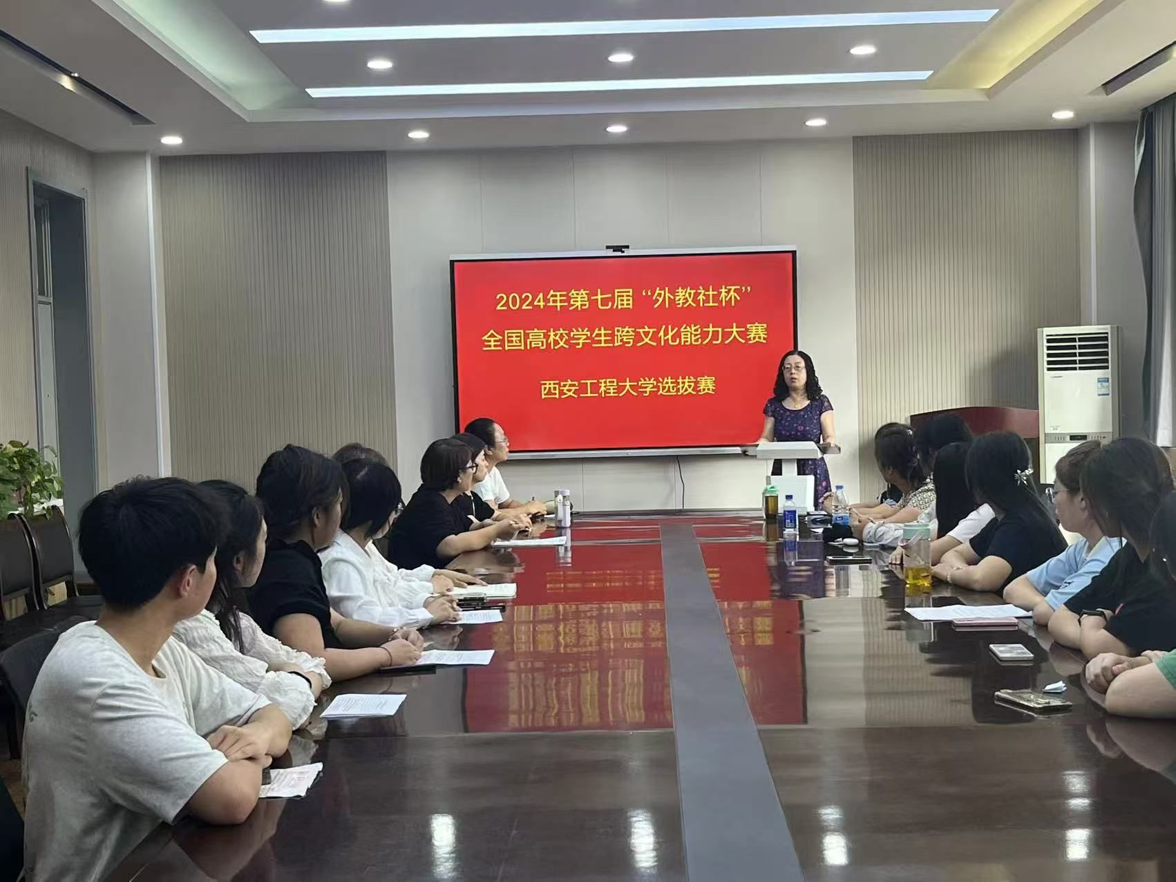 2024 年 9 月 11日,为提升老员工的跨文化能力,激发员工英语学习热情,公司成功举办了第七届“外教社杯”全国高校员工跨文化能力大赛2026世界杯官网选拔赛。在​公司领导的积极部署下以及竞赛组的努力筹备下,经过校内初赛预选,最终有来自纺织公司、城市规划与市政工程公司和​2026世界杯官网的十二名同学晋级本次跨文化能力大赛2026世界杯官网选拔赛。担任本次选拔赛由惠亚玲、李洁、江晋、曹晓英和陈西亚五位老师担任评委。