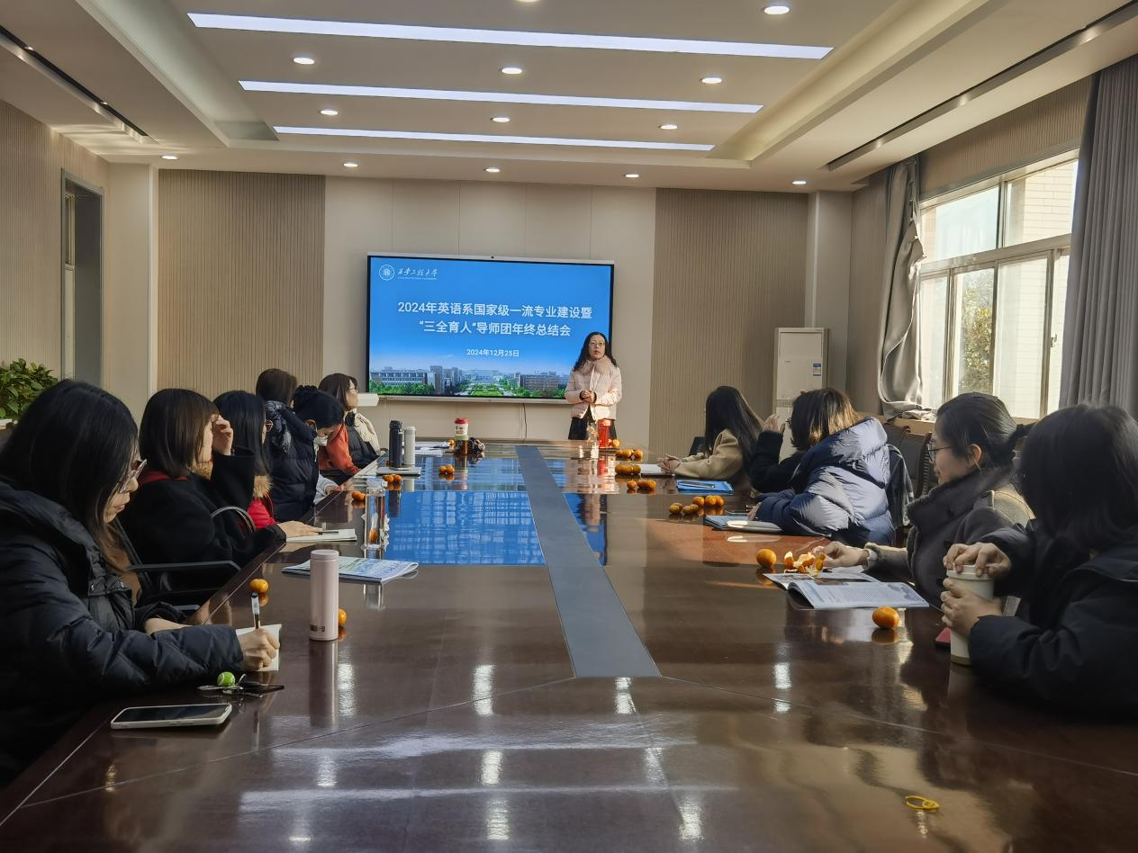 本次总结大会不仅是对2024年英语专业“三全育人”工作的系统回顾,更是对未来发展的深刻展望。展望2025年,英语系全体教师将继续携手并肩,以更加饱满的热情投入到国家一流专业建设和人才培养工作中,共同推动英语系向更高目标迈进,为培养更多高素质国际化人才不懈努力。
