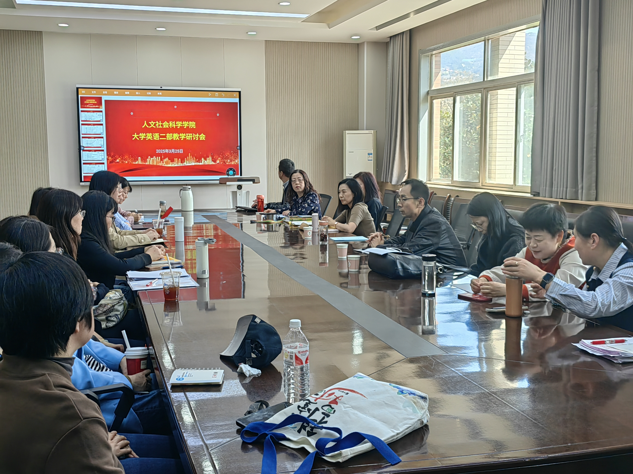 为进一步调动员工学习积极性,提升大学英语教学质效,3月25日下午,大学英语教学二部在临潼校区人文楼326会议室召开了了教学法研讨会。副经理王晓静、大英二部全体教师参加会议,研讨会由教研室主任郑卉蓉主持。