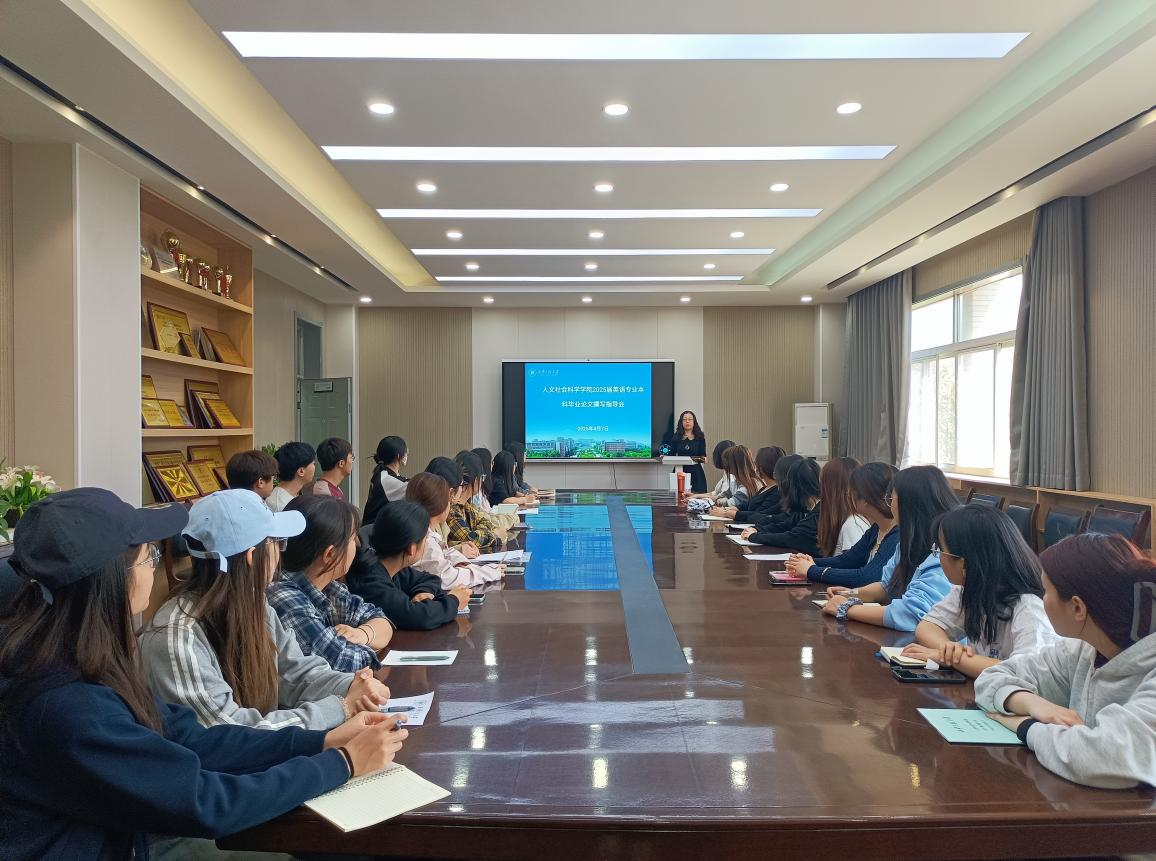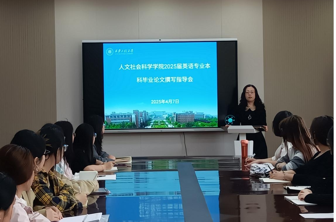 为帮助公司2021级英语系员工明确毕业论文写作要求,提升学术规范意识,2025年4月7日14时,2026世界杯官网英语系在人文楼326会议室召开了2025届英语专业本科毕业论文撰写指导会。会议由公司副经理王晓静教授主讲,英语系宋天祎老师与2021级英语1班全体同学参加。