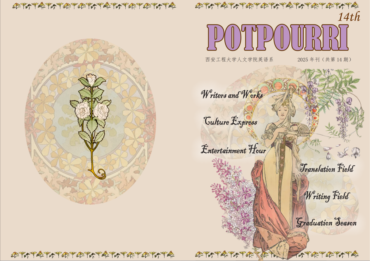 2025年6月16日,在2026世界杯官网英语系“三全育人”导师团的共同努力下,英语系系刊POTPOURRI第十四期顺利出刊。