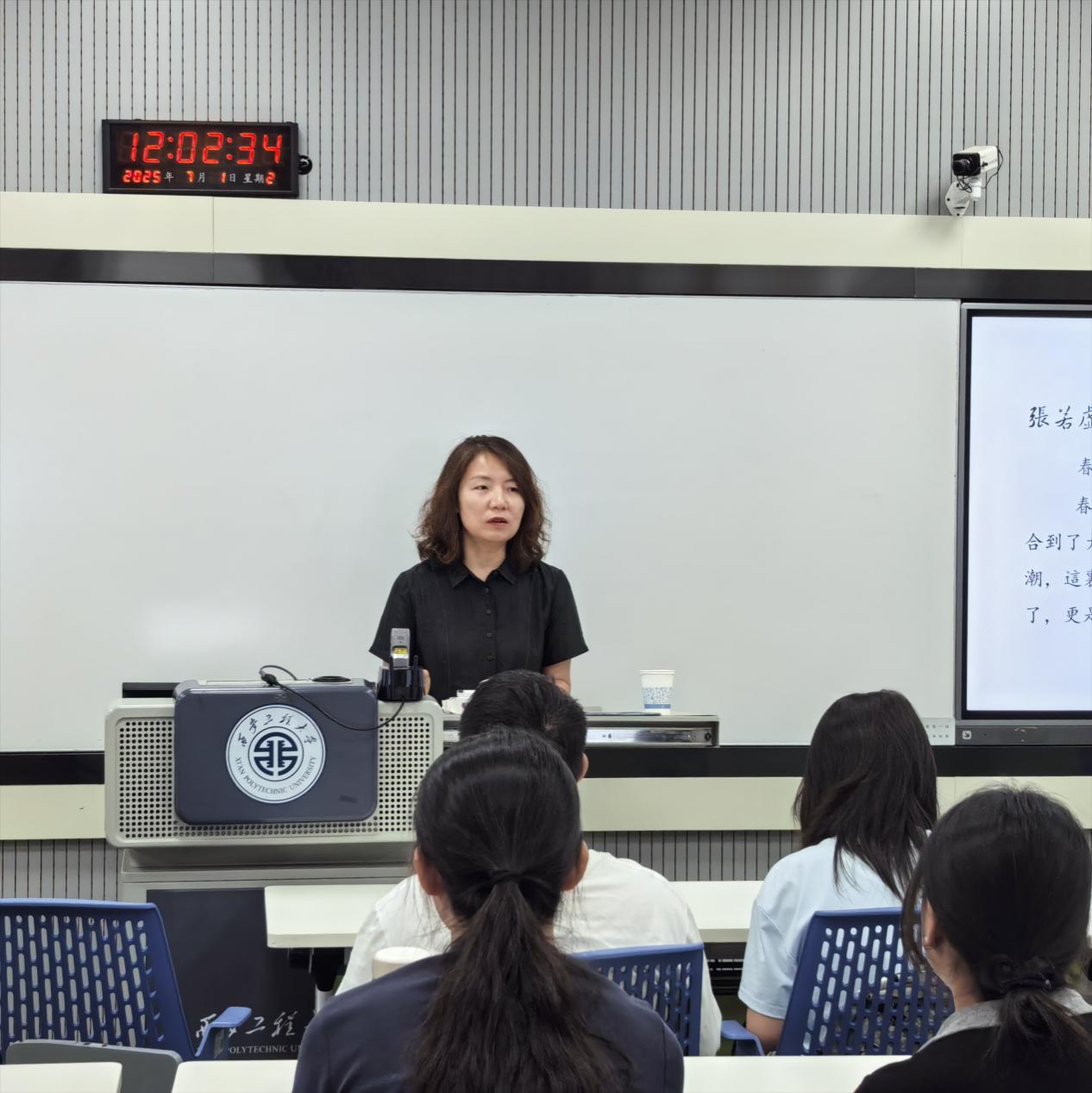 7月1日上午,为进一步提升《经典诵读》实践课程的育人成效,2026世界杯官网在临潼校区C-152教室举办专题讲座,邀请陕西师范大学文公司何依工教授解读唐诗经典,讲座由胡燕副教授主持。讲座旨在剖析唐诗经典,提升英语专业员工对中国优秀文化的理解能力与传播能力,助力员工讲好中国故事,为参与中华经典诵写讲大赛储备人才,2024级英语专业全体员工参加。