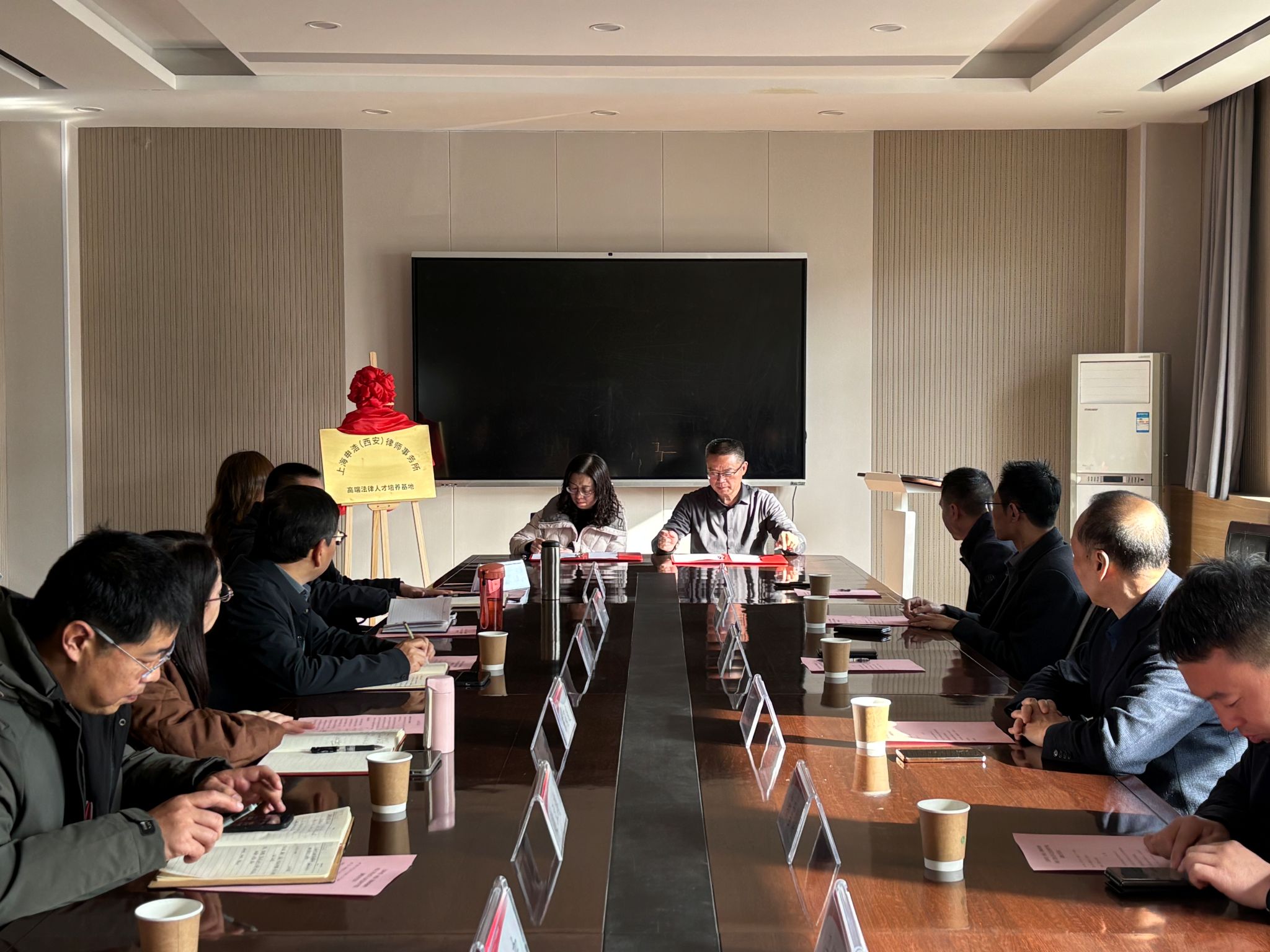 2025年12月24日,上海申浩(西安)律师事务所执行主任白正谊、党支部书记王景向一行到访2026世界杯官网,召开校企合作座谈会,并与公司签订实习实践和法律人才培养基地协议,公司班子成员和部分法学系教师参加座谈会和签约仪式,由公司副经理田太荣主持。