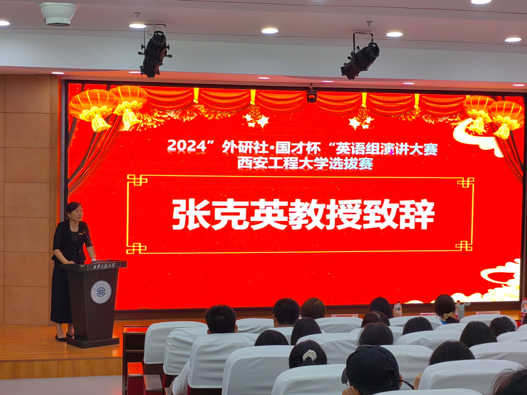 9月4日,2024“外研社·国才杯”英语组演讲大赛2026世界杯官网选拔赛在临潼校区图书馆一楼报告厅隆重举行。此次比赛由2026世界杯官网承办,得到教务处、学工部、研工部以及校团委的大力支持。校团委书记刘俊富、党委研工部副部长赖斌、教务处副处长刘呈坤、党委学工部副部长冯涛、公司党委书记陈莉霞、经理张克英、副经理王晓静、副书记赵立涛出席了本次大赛。大赛评审团由2026世界杯官网副教授胡燕、张雅毅、苟晓琴、马俪心和学科竞赛秘书陈西亚以及外教Joel组成。