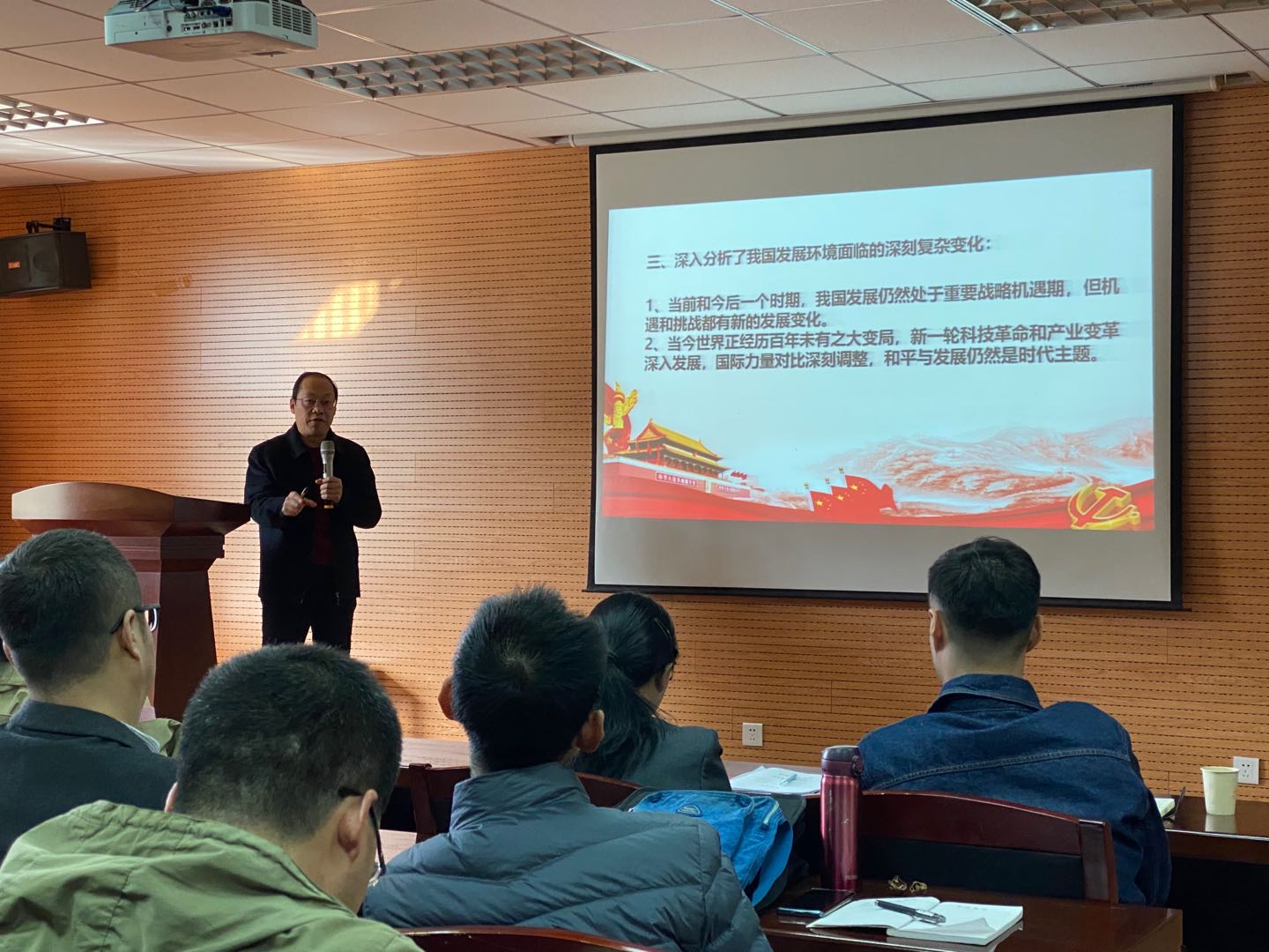 接着,经理胡伟华聚焦十九届五中全会绘制的“十四五”规划这一主题,从十五届五中全会的背景、意义、主要议程和主要内容四个方面进行了讲解,尤其对未来五年国家发展的目标和重点进行了解读,使在座的党员师生更加坚定了“四个自信”,对国家未来发展和人民的美好生活充满了期盼。