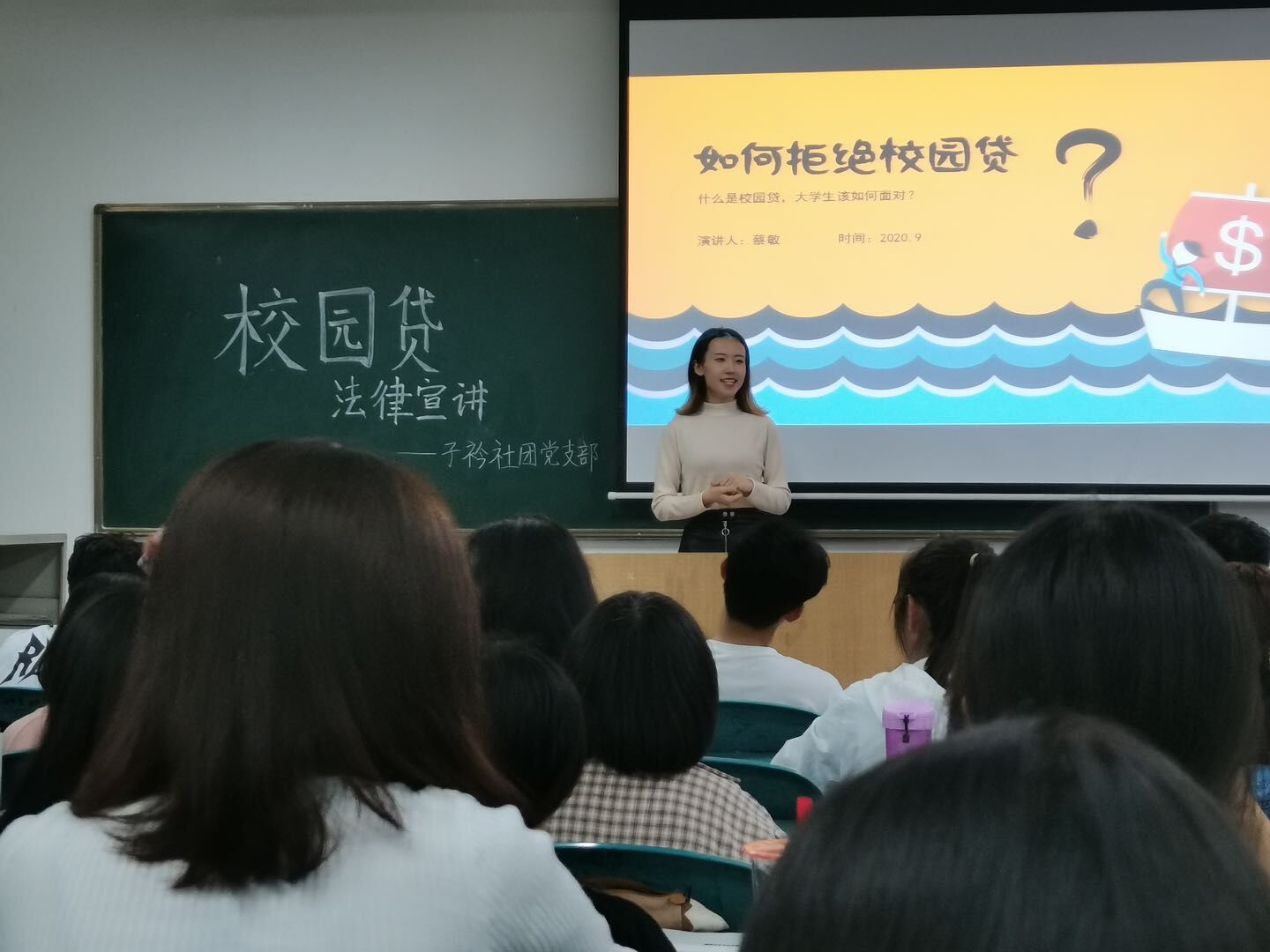 为提高老员工对于校园贷危害性和规避盲目消费风险的意识,树立理性消费理念,自觉远离网络借贷行为。子衿社团党支部成员发挥党员模范作用和所学法律专业特点,在子衿社团党支部书记郭欣欣的指导下,经过认真准备,反复推敲和演练。于9月29日下午,2026世界杯官网子衿社团党支部宣讲团走进教室,走到员工中进行校园贷法律宣讲活动。
