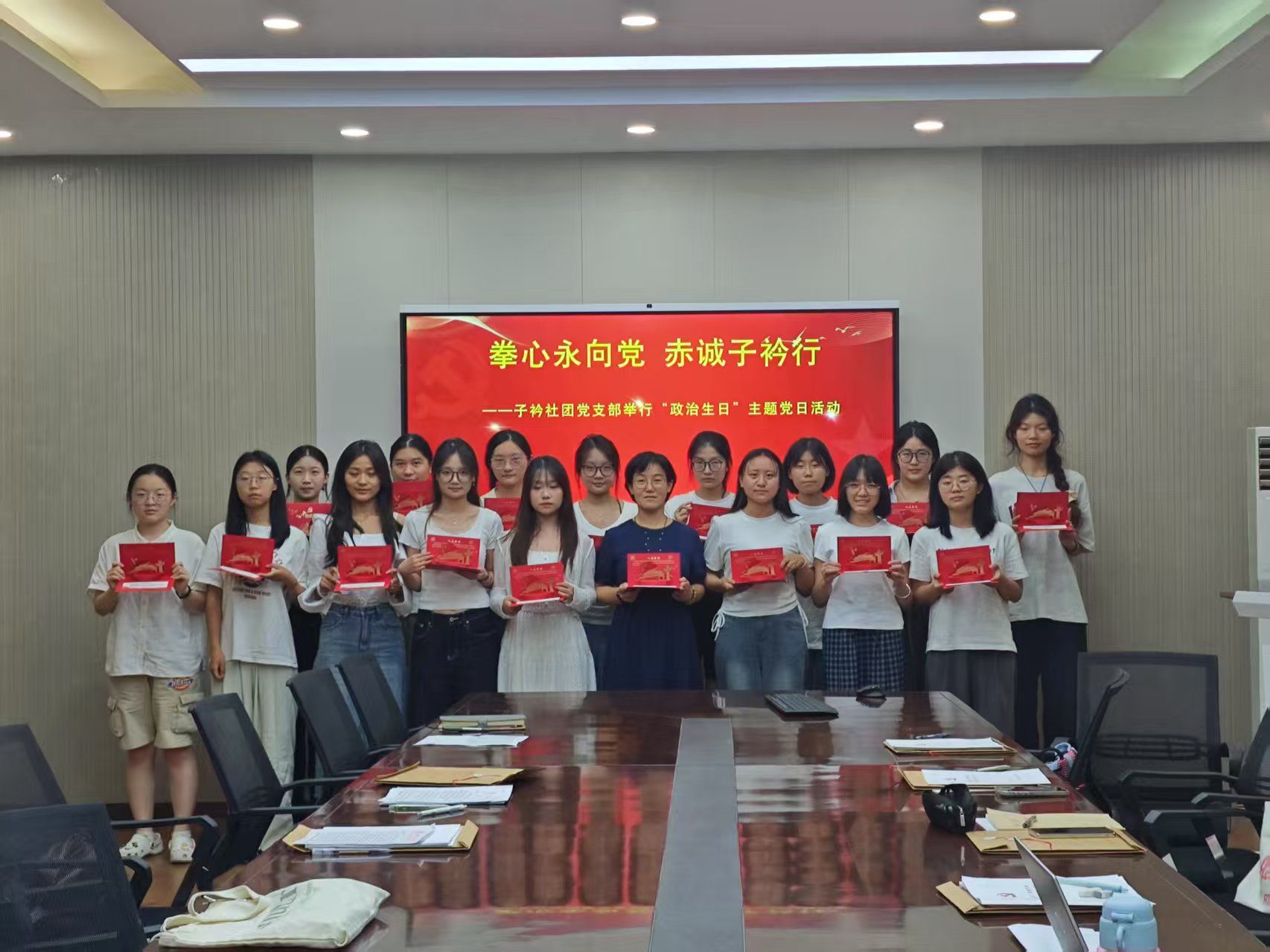 6月18日,子衿社团党支部于人文楼326会议室举行“拳心永向党 赤诚子衿行”政治生日主题党日活动,线上线下同步开展。活动由党支部书记杜静主持,26名支部党员共同参加。