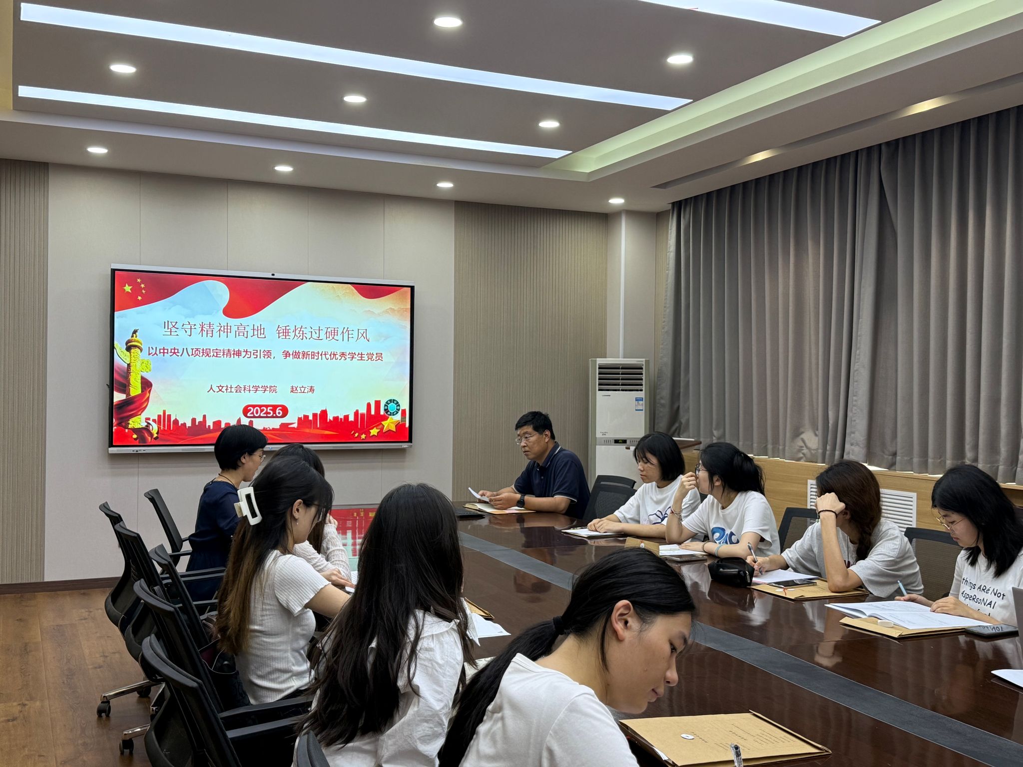 本次活动中,公司党委副书记赵立涛首先为全体党员讲授题为《以中央八项规定精神为引领,争做新时代优秀员工党员》的主题党课,激励青年党员严于律己、担当表率。随后,毕业生党员代表熊淑萌分享了在校期间的成长感悟与对党的深情承诺,号召学弟学妹们牢记宗旨、勇挑重担,在服务师生、奉献社会中践行党的宗旨,在强国建设、民族复兴的征程上书写属于子衿人的青春答卷。在支部书记杜静的主持下,支部严格履行程序,听取了第66期5名预备党员的转正述职汇报,经审议表决,一致同意其按期转正。