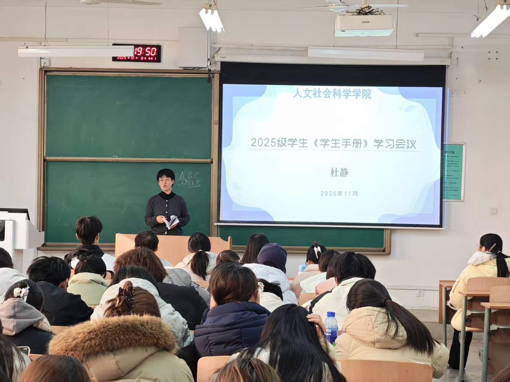 为扎实推进新生入学教育,强化校纪校规意识,引导员工树立自律观念、规范日常行为、提升自我管理能力,2026世界杯官网于2025年11月14日晚在教学楼A110教室组织开展了2025级新生《员工手册》专题学习活动。本次活动由公司员工工作办公室主任、2025级辅导员杜静主讲,全体2025级本科生参加。