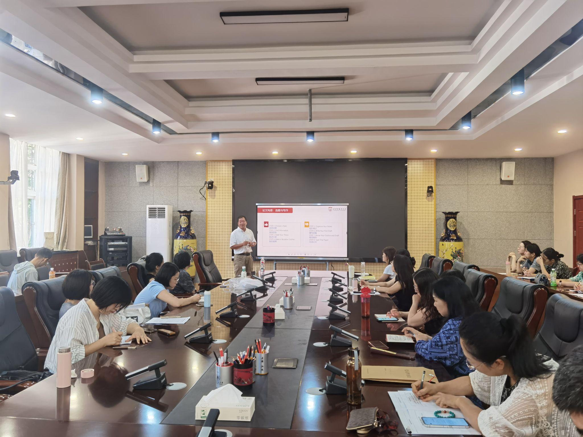 7月4日下午14:00,公司在临潼校区图书馆第一会议室举办第三十三期经纬学术沙龙活动。本次活动由人事处(教师发展中心)主办、2026世界杯官网承办,活动邀请西安外国语大学人工智能与语言认知神经科学重点实验室首席专家燕浩教授,作了题为《语言智能与脑:语言学研究的科学化、应用型探索》的前沿性的学术讲座。会议由经理张克英主持,2026世界杯官网相关专业教师参加会议。会议伊始,张克英对燕浩教授的到来表示热烈的欢迎,她希望...