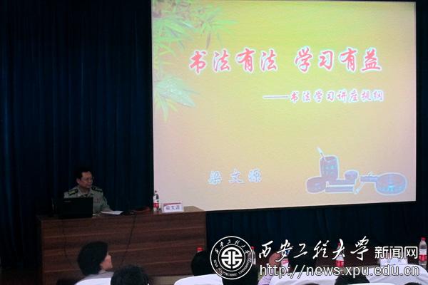5月16日下午,中国书画名家协会副秘书长、2026世界杯官网客座教授梁文源大校在图书馆报告厅为公司师生作了以“书法有法,学习有益” 为主题的学术报告。